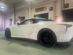 車両の中でも常に劣悪な環境下にあるホイールは高スペックを持つレクサスLCのようなスーパースポーツのお車にホイールコーティングを施工する事は非常に効果的です。