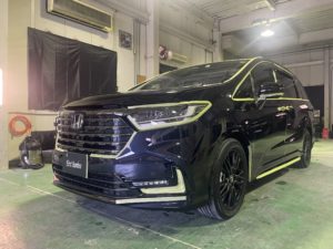 [千葉県大網白里市のお客様]新車HONDAオデッセイ アブソルート BLACKエディション FEYNLABセラミックウルトラ ウィンドウガラス全面強撥水コーティング フロントグリルコーティング