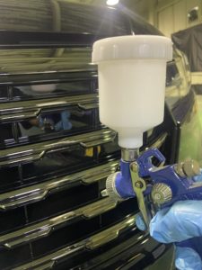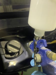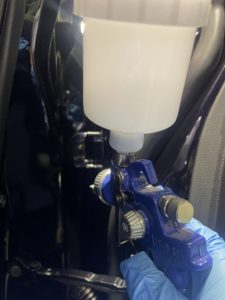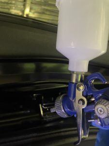 細かな場所や手が届きにくいドアの内側などもスプレーガンを使用する事で隅々まで施工が出来ます。