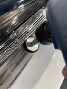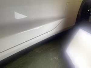 セラミックコーティングは施工難易度が高いため液剤の塗りムラや拭き残しがあると除去することが困難になってしまうため1パネルづつ確実に完成させながら行うためコーティング施工専用の特殊ライトは必ず必要な設備になります。