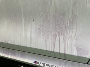 鉄粉付着が塗装表面にあることで車輌の美観に影響を与えることや、コーティング施工をするさいに平滑な塗装表面よりも凹凸になっているためコーティングの定着率や持続性などにも影響を及ぼすため下地処理は必須と